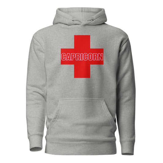 CAPRICORN ZODIAC - RED CROSS HOLLOW TEXT - PREMIUM COTTON HERITAGE GREY HOODIE